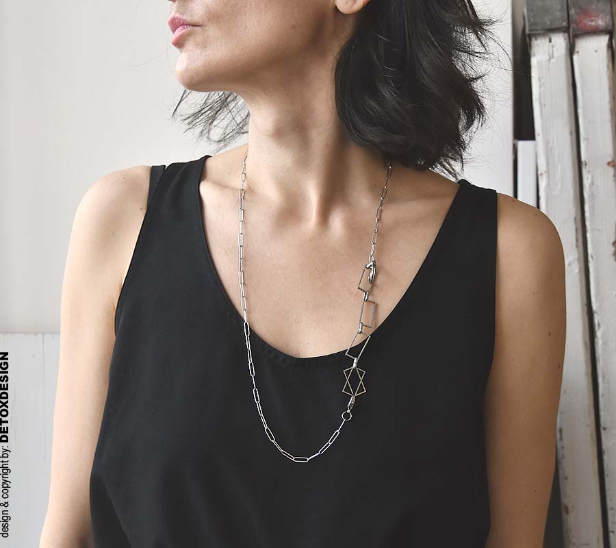 Oryginalna bransoletka, zachwycająca szlachetnie minimalistyczna bransoletka i geometryczna bransoletka to również zjawiskowy damski naszyjnik, który można nosić na wiele sposobów.