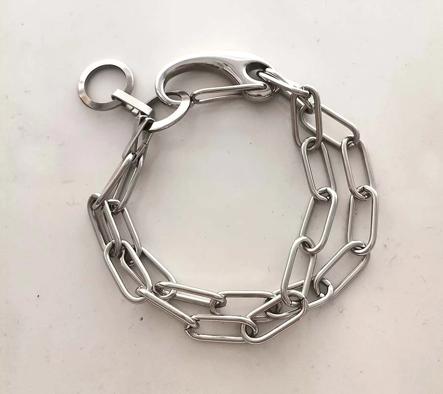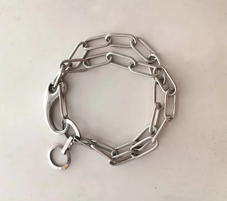 Łańcuch w tej srebrnej bransoletce ma piękne wydłużone proporcje oczek o szlachetnie i subtelnie industrialnym charakterze. Jest niezwykle wytrzymały. Ponieważ każde oczko jest niezależnie lutowane. Dlatego to sprawia, że jest odporny na rozerwanie. Podwojenie łańcucha oplatającego nadgarstek dodaje temu modelowi siły. I wzmacnia jej szlachetnie industrialny charakter. Nie odbierając jej jednak lekkości. Jedną stronę łańcucha kończą dwa zachwycające proporcjami okręgi i łączące je szlachetne płaskie ogniwo. Natomiast po drugiej stronie łańcuszka znajduje się duże, szlachetnie industrialne, intrygujące i współcześnie eleganckie zapięcie.